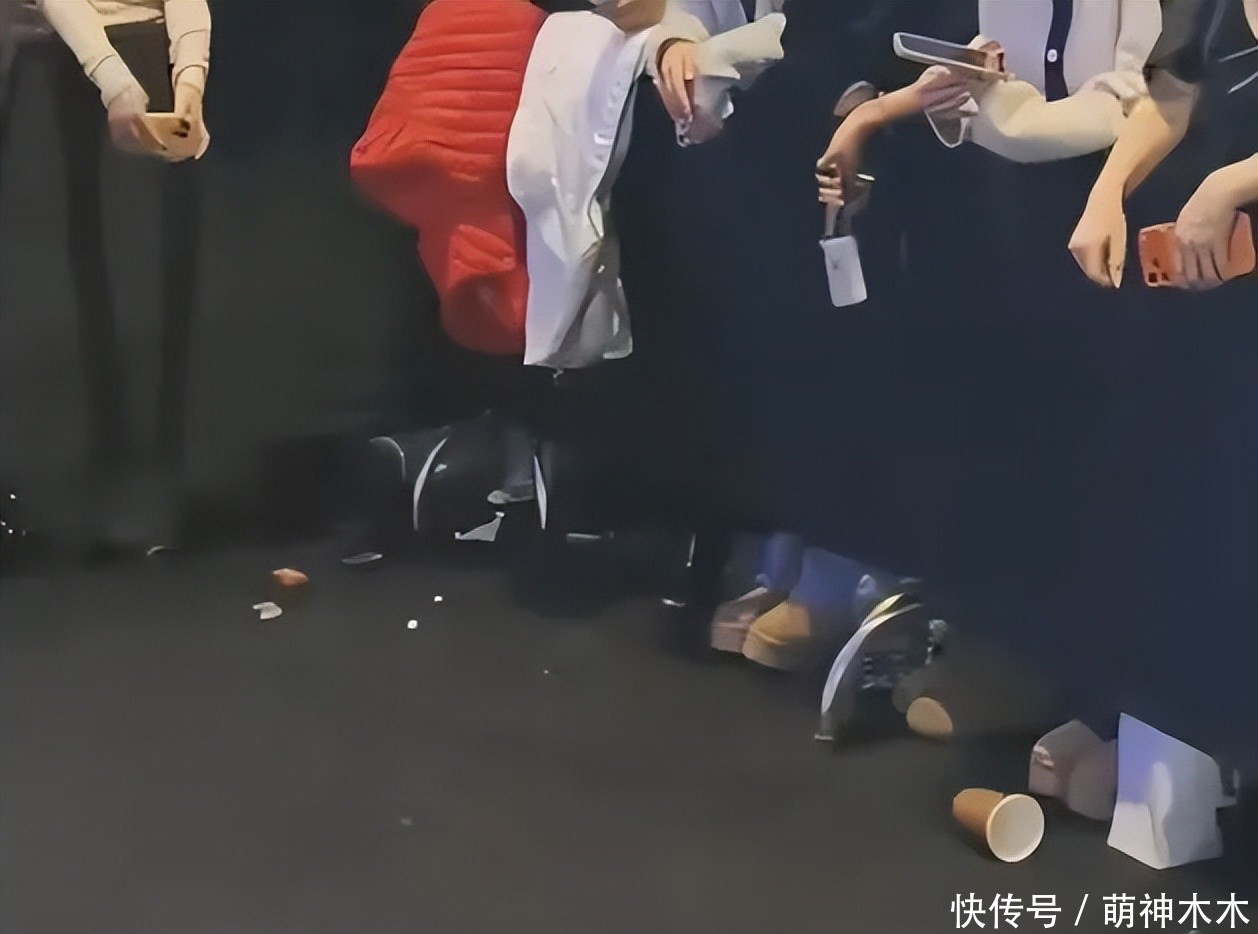 明星没几个、网红排排站,红毯围挡上还搭着几件羽绒服,空杯子直接丢在地上,满地垃圾像极了菜市场。